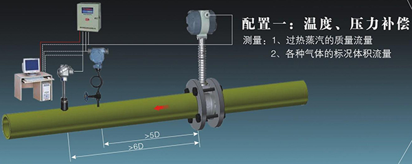 5、表體中同時(shí)集成溫壓補(bǔ)償補(bǔ)償功能,可測(cè)量流體的標(biāo)準(zhǔn)體積流量或標(biāo)準(zhǔn)質(zhì)量流量。