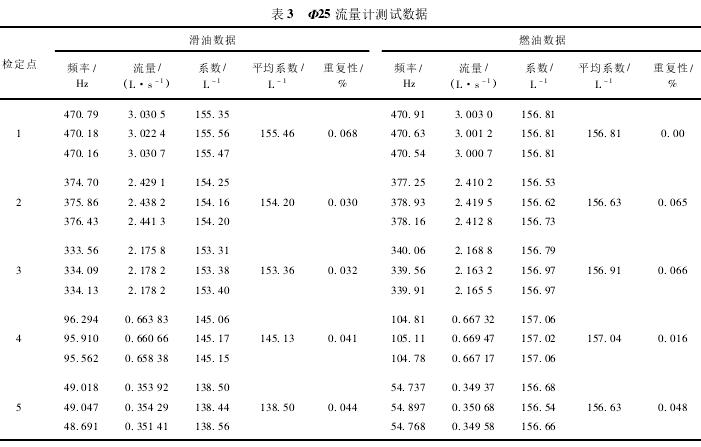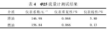 Φ25流量計測試數據如表3所示。