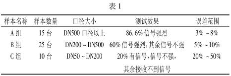 通過大量的在線檢測試驗,可以看出所測管道管徑對超聲流量計測試效果有明顯影響。根據數據顯示,管徑越大,測試效果越好,示值誤差越小。隨著管徑的減小,超聲流量計所能檢測到的流速信號也隨著變弱,當口徑小于 DN50 時,基本沒有信號或是產生巨大的干擾信號。