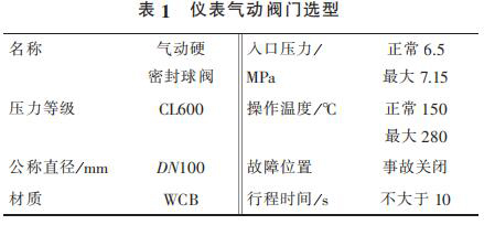 1) 溫壓補償蒸汽流量計出口管線總閥泄漏無法在線處理,導致氣化爐停車。在入氣化爐根部增加 2 臺儀表氣動閥門,要求每月進行 2 次開、關,防止閥門出現卡塞現象。 新增 2 臺儀表氣動閥門相關參數見表 1。