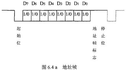 飲用水流量計等節點設備和站內PC機間的通信采用異步串行通訊控制規程,并采用地址位喚醒握手協議。因此在協議中規定了傳地址和傳數據兩種不同的幀格式,如圖.64所示。地址幀和數據幀由11位構成,幀格式為l位起始位,l位停止位,8位數據位,1位*9位。我們將*9位設定為“地址/數據指示位”,用來區分所發送/接受的幀信息是地址幀還是數據幀。*9位為1,表示PC機發送/接受的是“地址幀”*9位為O,表示主機發送/接受的是“數據幀”。命令幀與校驗和的發送格式與數據幀相同,因此可由數據幀演化得到。