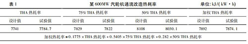 隨著火電機組利用小時數降低,發電企業一般都會根據不同負荷工況下的實際運行小時數,確定機組熱耗率考核權重,形成*終的加權熱耗率考核值??己思訖酂岷穆蕦υO備廠家末級葉片選型、高壓調門與高壓缸匹配性提出了更高的要求,在當前負荷率偏低的情況下增強了發電企業的競爭力。然而,僅僅對加權熱耗率進行考核是不夠的,設備廠家為了增強自身的競爭力,往往會把全部重點放在如何降低占比大的低負荷熱耗率上而犧牲高負荷的熱耗率,這無疑削弱了發電企業的適應性。某廠一臺 600MW 汽輪機通流改造時僅對加權熱耗率進行考核,THA 熱耗率要高出設計值43. 7 kJ/( kW·h) ,詳見表 1。通流改造時既要對加權熱耗率進行考核,也要對 THA工況時熱耗率進行考核。