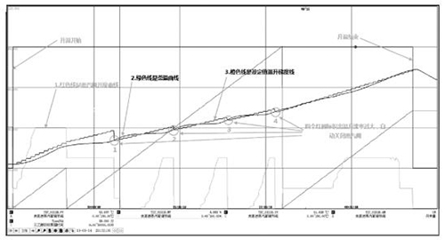 全過程升溫曲線見圖 2,從圖 2 可以看出,通過上述工藝參數的設定,從升溫開始到升溫結束,管道流量計溫基本上是按照溫升梯度進行升溫,當出現溫升速率太快時,蒸汽閥自動關閉,無需人工參與,可以自動控制管道流量計料液溫度的平緩上升,實現脫溶單元操作自控運行。