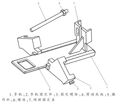 (1)閥瓣拆裝及接觸試驗?zāi)K的特點閥瓣拆裝及接觸試驗?zāi)K主要由導(dǎo)軌、導(dǎo)軌固定件、滑動底板、操作桿、固定螺栓、閥瓣固定座等零部件組成。