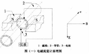 設在均勻磁場中,垂直于磁場方向有一個直徑為D的管道。管道由不導磁的材料制成管道內表面襯掛絕緣襯里。當導電的液體在導管中流動時,則導電液體切割磁力線,于是在和磁場及流動方向垂直方向上產生感應電勢,如安裝一對電極,則電極間產生和流速成正比例的電勢差。