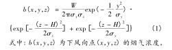 式中: b(x,y,z) = w × e(x,y,z),其中 e(x,y,z) 為二氧化硫濃度與循環流化床火炬氣流量計煙氣排放源煙氣強度的比例系數;f 為平均風速,m/s; w 為地面空氣內煙氣排放強度;σ x 為橫向擴散系數受環境穩定度與下風向距離因素的影響程度。式(3)中描述的是基于時間變化的循環流化床火炬氣流量計煙氣排放源煙氣排放強度計算模型。