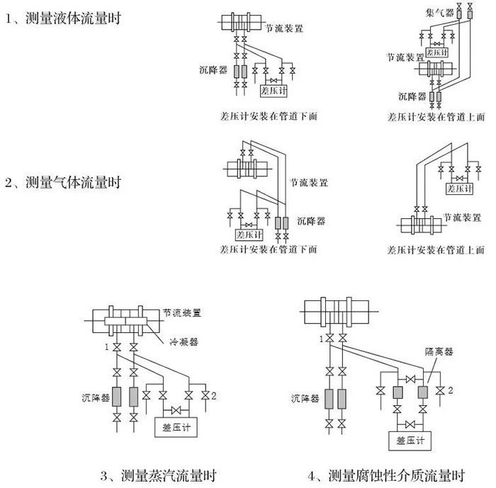 根據被測介質的性質、節流裝置與差壓計的相對位置,差壓信號管路可有以下幾種安裝方式: