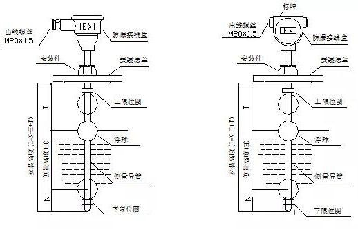 2、安裝前需確認(rèn)被測液體內(nèi)及液位計(jì)周圍不應(yīng)有鐵磁性雜質(zhì),且介質(zhì)比重應(yīng)大于浮球的比重,否則會影響液位計(jì)正常工作。