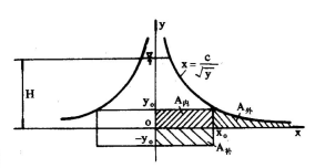 即縱坐標y值趨近于零時,橫坐標x值趨近無窮大。這在堰板的實際制作上是無法實現的。若將堰口曲線的*低縱坐標取為yo,在yo一下至(-yo)增開一矩形,即高為2yo,寬為2x。的補償孔,從數學上可以證明,坐標原點以下所增大的矩形面積(A補)正好等于舍去的曲邊面積(A補)。由圖3可知