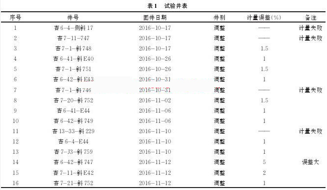 通過現(xiàn)場多口井試驗,試驗井如表1所示。污水流量計可以較為準確地計量水泥車上水總量,防止替空、留水泥塞事故的發(fā)生。